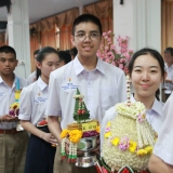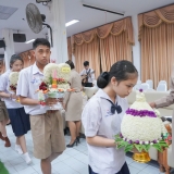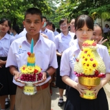 The students hope to gain merit and good fortune for the coming year. Every student comes to school with a bunch of flowers for their teachers.