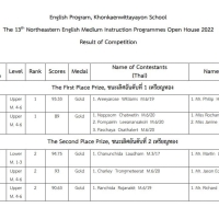 Congratulations Suwichada Khosadee of M5/19, Ponrawin Kansaksiri, Paiya Sidrojanarith of M5/20, for winning Third Place of Math Project, Upper Level in the 13th Northeastern English Medium Instruction Programs Open House 2022, at Roi Et Wittayalai School, 24th-26th August 2022.