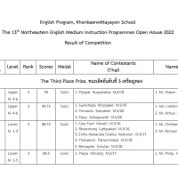 Congratulations Praiya Klinsang of M2/17, for winning Third Place of Multi Skills, Lower Level in the 13th Northeastern English Medium Instruction Programs Open House 2022, at Roi Et Wittayalai School, 24th-26th August 2022.