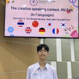 Michael and Pufa of M5/18 won in the Creative Speaking Contest, HU Talk (in 7 Languages)